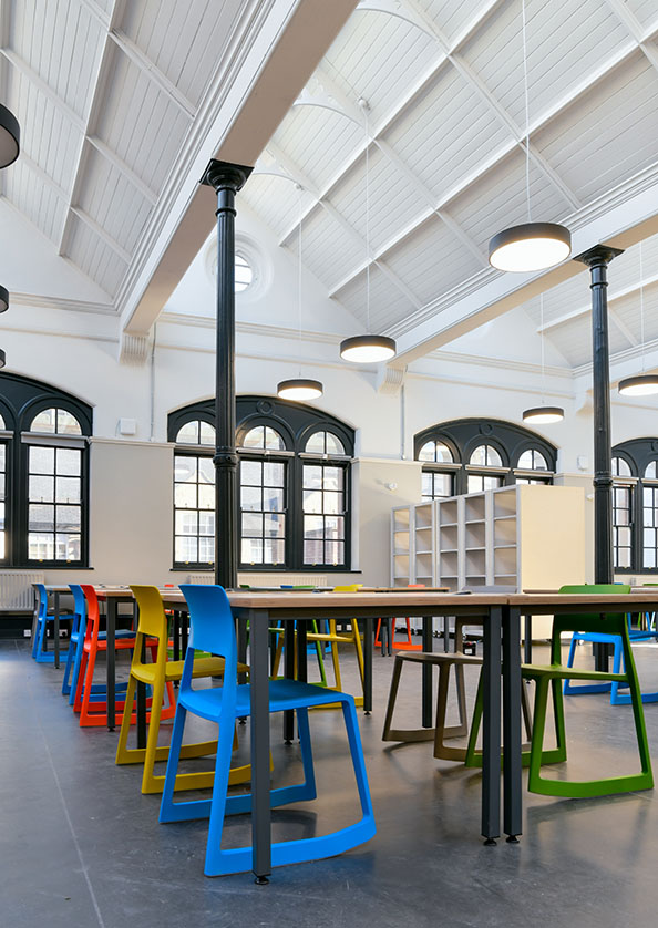 • Every student will have their own desk, drawing board, power supply, USB point and cutting mat. They will keep their own studio space all the way through their degree.